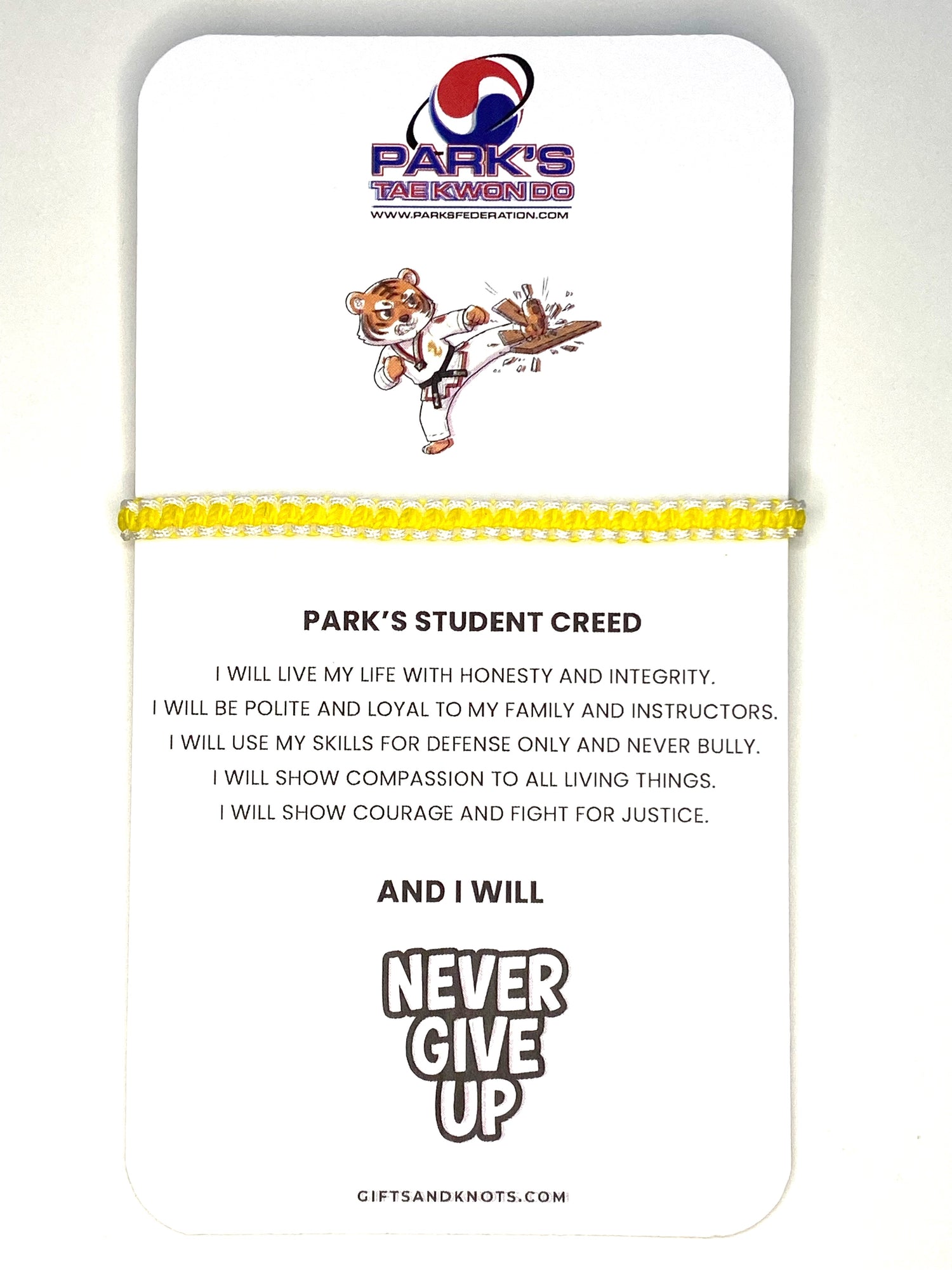 Parks Taekwondo Bracelet - Student Creed Card - Pembroke Pines - Pickup